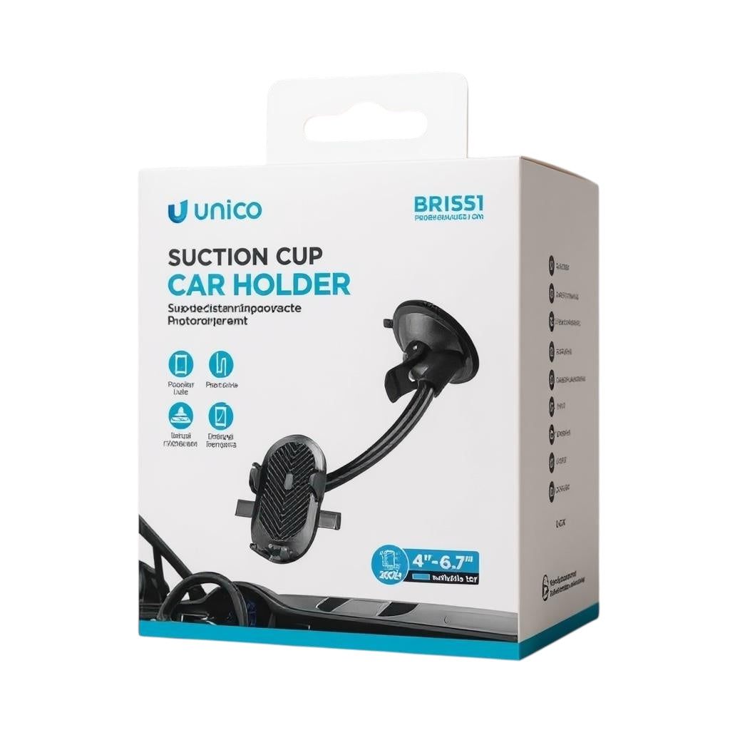 Unico Suction Cup Car Holder BR1551 | Adjustable Car Phone Holder for 4-6.7 Inch Phones