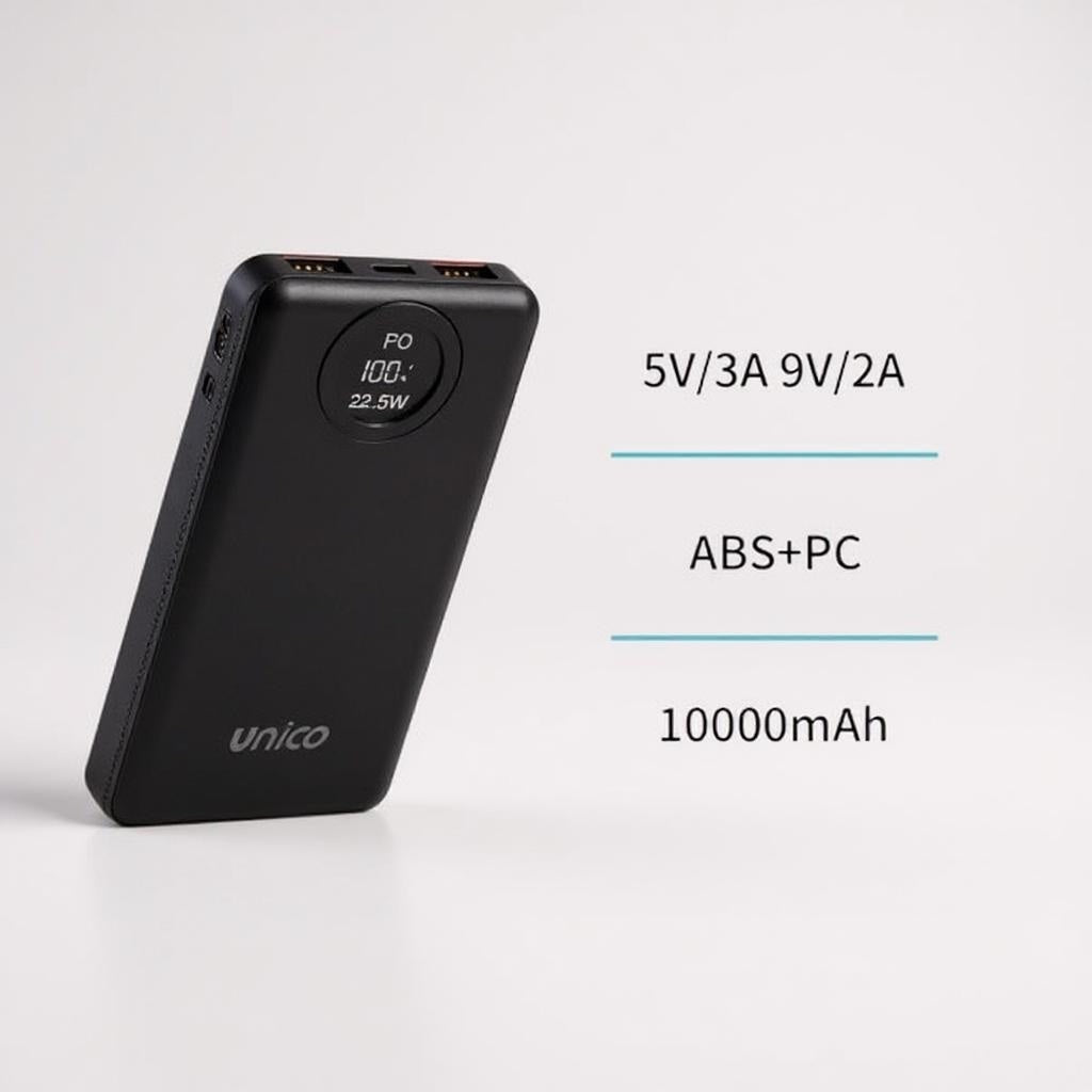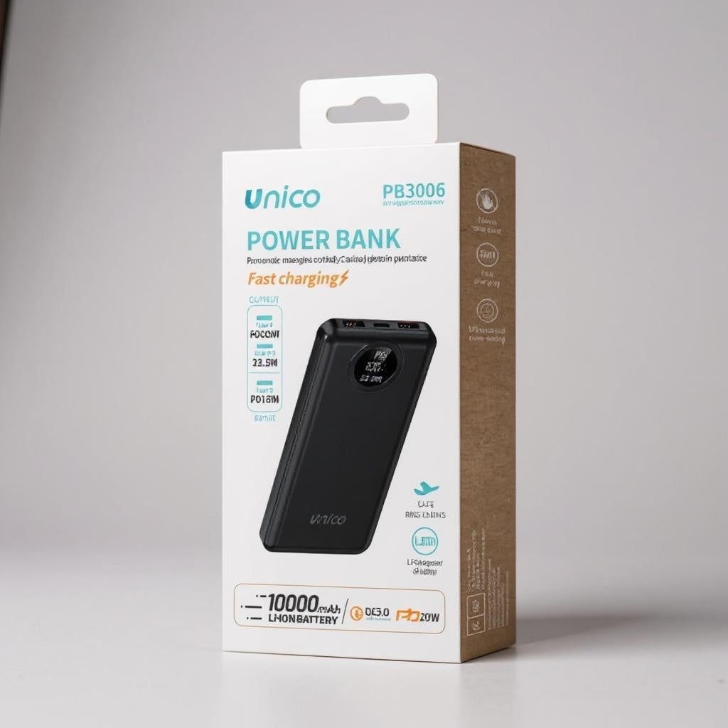 Unico PB3006 Power Bank with a capacity of 10,000mAh, featuring fast charging capabilities and an LED power display