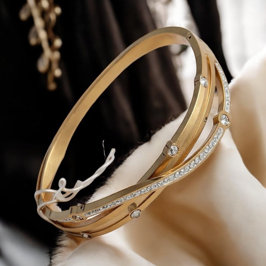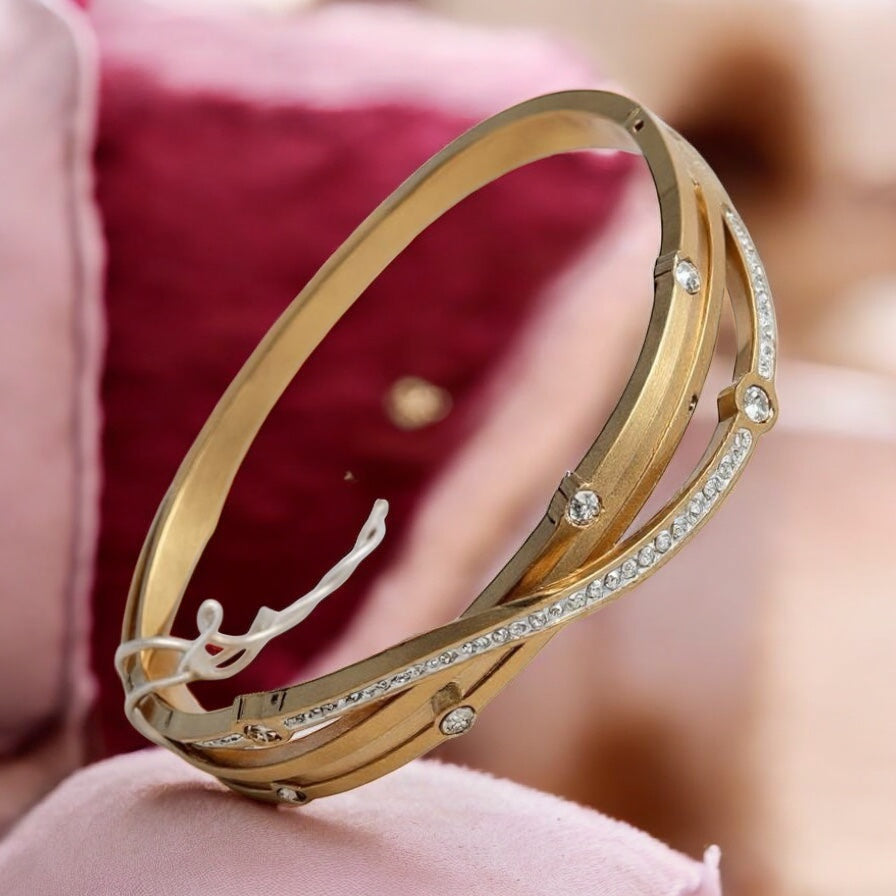 Stainless Steel Gold Color Plated Bracelet – Elegant & Durable Stone Studded Bangle